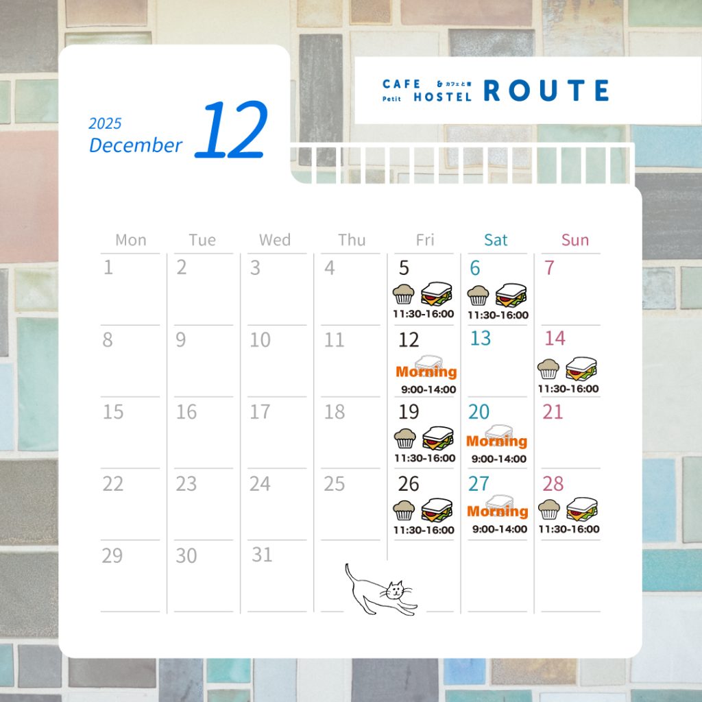 12月のカフェ営業日カレンダーです。どうぞよろしくお願いいたします😊